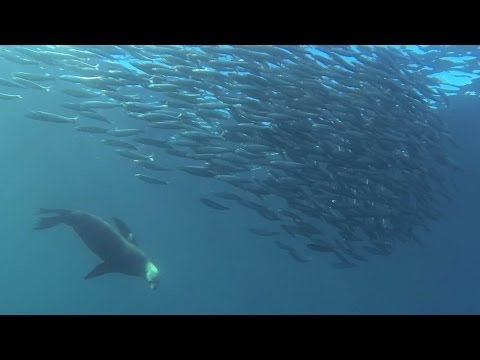 Like all of my underwater videos, I filmed this while freediving. This was my first time to see a bait ball being corralled by a sea lion and I was very excited to be there filming it! Fortunately the water visibility was crystal clear so I could really get a good look at what was going on! Enjoy ^_^